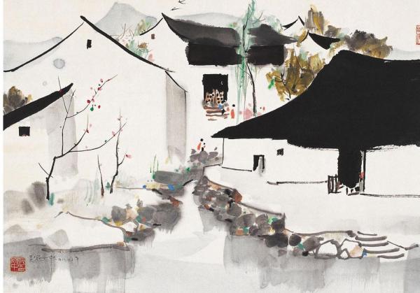 在滿足了基本需求后,孟浩凡才開始考慮,如何為這座古鎮(zhèn)保留傳統(tǒng)江南民居的神韻,又體現(xiàn)出現(xiàn)代學(xué)的美感和創(chuàng)意。他想到了畫家吳冠中。孟浩凡說,比起具象的元素,他更多考慮的是保留“氣質(zhì)”?!氨热缯f你看這色調(diào),色調(diào)是白墻綠瓦,中間有一些灰色系的這種磚,都是老色調(diào)的基底給我們的感覺。這種壓頂?shù)木€條,像吳冠中的畫,都是很抽象的嘛。畫江南民居,他畫出來很抽象的藝術(shù)畫,沒有具象的符號,但是你一看這個(gè)東西它就是江南的,因?yàn)槲蓓數(shù)倪@種曲線、線條,勾勒出了江南的這種俊秀。”