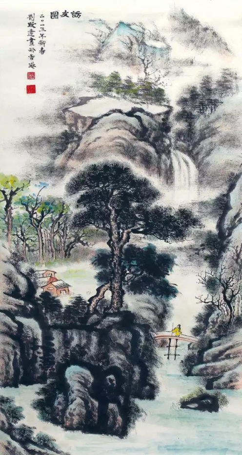 劉致遠(yuǎn)《訪友圖》136cmx68cm 紙本設(shè)色