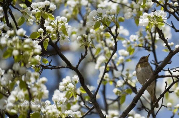 桃樹、杏樹、梨樹,你不讓我,我不讓你,都開滿了花趕趟兒。紅的像火,粉的像霞,白的像雪?;ɡ飵е鹞秲海婚]了眼,樹上仿佛已經滿是桃兒、杏兒、梨兒?;ㄏ鲁汕С砂俚拿鄯湮宋说佤[著,大小的蝴蝶飛來飛去。野花遍地是:雜樣兒,有名字的,沒名字的,散在草叢里,像眼睛,像星星,還眨呀眨的。