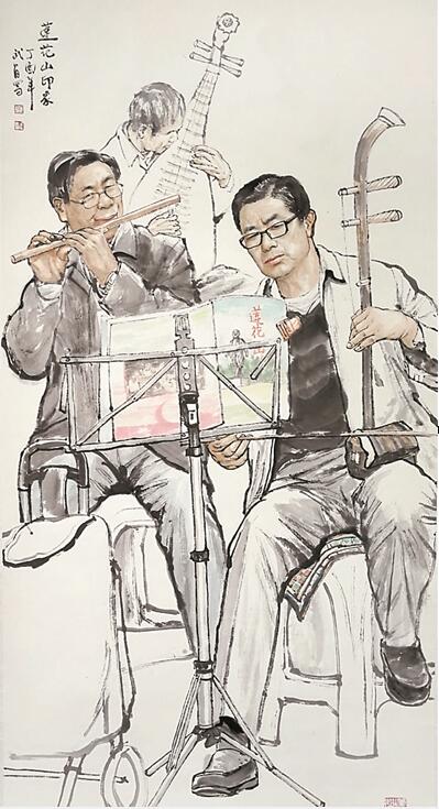 蓮花山腳下,幾位老年人聚在一起,拉二胡、吹笛等,秀出“十八般武藝”;書屋一角,一群孩子席地而坐,捧著心愛的讀物專心致志地看起來……此次國畫展以中國畫的形式表達了畫者對福田、對祖國的深情厚誼和對美好生活的向往熱愛,也展現了廣大老年人在福田區(qū)生活的良好精神文化生活狀態(tài)。園嶺街道老年協(xié)會的朱女士觀展后說,畫展給轄區(qū)長者搭建了充分發(fā)揮自己才藝的平臺,展現出轄區(qū)老年人充實愉快的晚年生活;同時,令老年人減輕對子女的依賴,活出獨立的生活品味。