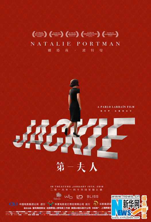 此次曝光的海報巧妙喻示了肯尼迪遇刺后總統(tǒng)夫人杰奎琳的人物心理狀態(tài)。海報中由娜塔莉·波特曼,在由自己名字組成的階梯上艱難攀登,一席黑色連身裙整潔樸素,在鮮紅色的背景中顯得孤獨神秘,同時也暗藏危機(jī),雖背影示人,但讀出了優(yōu)雅自信,似乎已放下內(nèi)心的秘密與束縛,坦然面對命運帶來的一切。