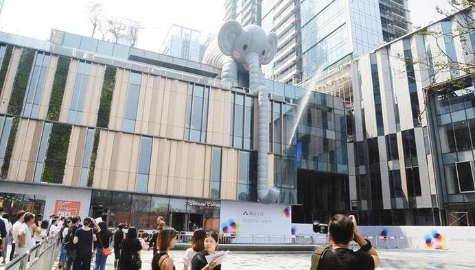 在國內以K11、芳草地等為代表的藝術購物中心迅速崛起的時候,深圳本地的購物中心也越來越多地把目光投向藝術。2017年9月底開業(yè)的深圳萬象天地在開幕之初就設計了一系列藝術活動吸引眼球,一邊邀請“大黃鴨之父”、荷蘭概念藝術家弗洛蘭泰因-霍夫曼設計大型永久戶外大象藝術裝置“Bubblecoat Elephant”,一邊在頂層設置云端沙龍作為“思享”平臺,定期推出文化活動。萬象天地定位為匯聚藝術、時尚、創(chuàng)作及人文的全新消費體驗空間,從一開始就把藝術體驗放到了重要的位置。