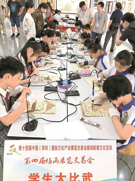 第四屆烙畫展覽交易會組委會負責人介紹,過去一年,光明烙畫在光明新區(qū)管委會的大力支持和社會各界的幫助下,已走進部分學校授課,受到學生們的歡迎。在第八屆中國國際新聞短片節(jié)中,烙畫得到了國際友人的了解、認可,更得到他們的喜歡和點贊。今年4月6日,光明烙畫也走進了北京大學校園,得到師生們的一致好評。為了辦好今年的展交會,組委會于2018年1月份就開始籌備、宣傳、征稿,來自全國20多省市的120余名烙畫藝術家參加,作品有300余幅。參展作品題材豐富多樣,有人物畫、山水畫、動物畫、靜物畫、歷史畫等,其中山水畫中以描繪祖國大好河山的居多。同時,本屆展交會分兩大展示區(qū),分別是烙畫基地展示區(qū)和光明新區(qū)文化館展示區(qū),其中烙畫基地展區(qū)內又分為九個區(qū)域。此次活動安排了烙畫藝術家畫光明,童心的世界才藝表演,烙畫大比武,特邀國家級大師走進光明等特色活動,讓每位參觀者體驗具有時代藝術特色的烙畫盛宴。