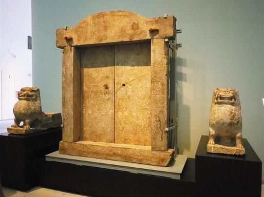 據(jù)吳強(qiáng)華介紹,“胡客翟門生”系列文物包括石門楣、石門檻、石門、石闕、石床、石枕、石屏風(fēng)等17件套(組),其上不僅刻畫(huà)了中西文化碰撞、交融背景下的人物、器物圖像;更為難得的是,其石屏風(fēng)正反兩面分別刻有儒家孝文化經(jīng)典中的郭巨、董永、董黯孝子傳圖,并有注明是“阮籍”、“(向秀)”榜題的“竹林七賢與榮啟期”八位高仕形象,體現(xiàn)了胡人在華夏文明的浸潤(rùn)中,價(jià)值觀與思想觀的轉(zhuǎn)向與認(rèn)同。