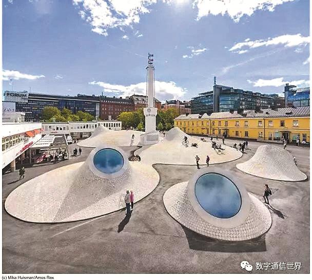深圳特區(qū)報2018年12月25日訊 在芬蘭首都赫爾辛基市中心的水晶宮廣場上,原本平整的地面上拱起了大小不等的5個小“山丘”,高的約5米,矮的大概有2米。小“山丘”坡度平緩,與地面連成一體,遠看有點像鼴鼠的洞穴。