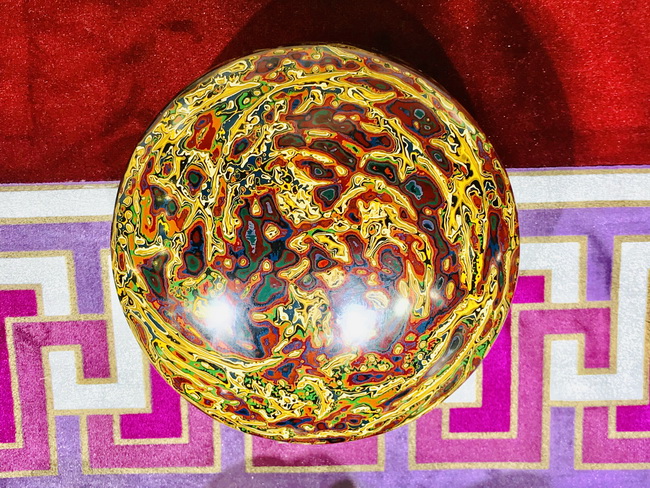 談到從事漆藝的經(jīng)過,羅獻(xiàn)兵老師說,主要得益于爺爺留下的2本書:一本是《文心雕龍》,一本就是既無書皮、也無目錄的匯集了中國(guó)歷代漆藝典故的油印小冊(cè)。據(jù)這本無皮書記載:“……又清嘉間浙江羅宣蓀善漆,有填漆彩髹之器皿又以五彩稠漆堆成花葉之色,又作種種之斑紋磨平之如畫……。60年代未,這本“無皮書”始終未離他爺爺?shù)淖笥?,老人家總是手捧那本無皮線裝書,時(shí)而思,時(shí)而記,其他百事不沾。這本無皮書現(xiàn)在成為羅氏傳承的唯一依據(jù)。羅家從太祖輩起,就世代從事漆藝,一扎根就是近200年,羅獻(xiàn)兵已是第六代。用他的話說,“正是爺爺贈(zèng)予的冊(cè)子里描述的關(guān)于漆器迷幻般的漆彩世界的好奇,砥勵(lì)著我在漆藝這個(gè)充滿五彩斑瀾的夢(mèng)幻世界里探尋、摸索,并甘于清貧,樂此不彼?!?/p>