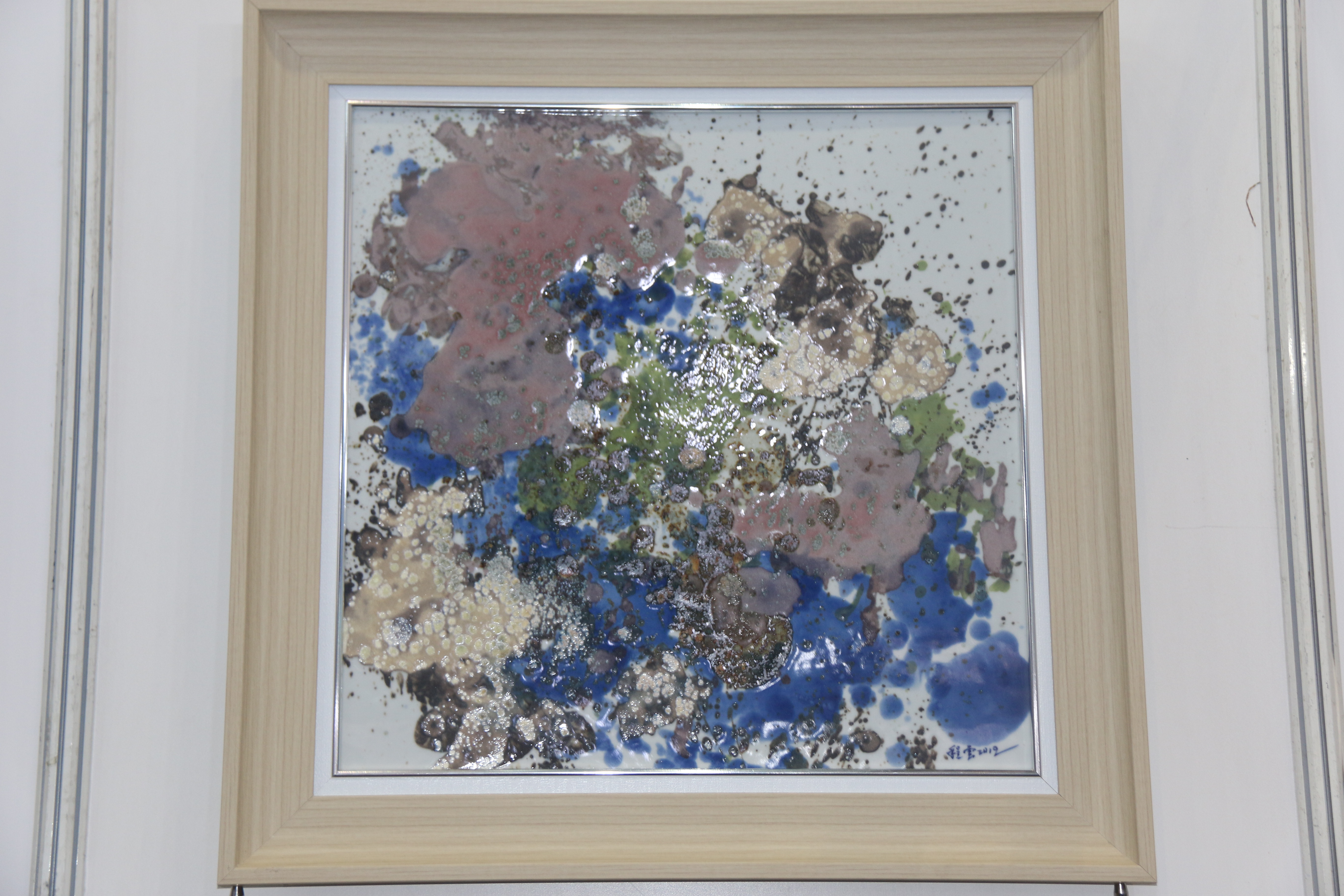 而在此次程云教授展出的作品中,除卻傳統(tǒng)瓷板畫外,一種特別的板畫吸引著記者目光。程云教授介紹到“這是一種新的板畫即“青花+顏色釉”板畫,是一種取青花及顏色釉二者之精華的特殊板畫,既有這青花的明靜素雅,也有著顏色釉的歡快明亮,不同的人,不同的審美都能在這種板畫中找到自己喜歡的元素?!?/p>