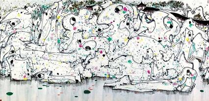 描繪蘇州四大園林之一獅子林風(fēng)景的獅子林題材是吳冠中生平最重要的藝術(shù)創(chuàng)作之一,被認(rèn)為是代表吳冠中藝術(shù)生涯承前啟后的重要杰作,囊括了他對西方與東方、傳統(tǒng)與現(xiàn)代、物質(zhì)與精神所有的理解和闡釋。從《獅子林》開始,吳冠中以點(diǎn)、線、面表現(xiàn)山川風(fēng)景的個(gè)人畫風(fēng)得以形成。此幅《獅子林》是吳冠中1988年創(chuàng)作的。2011年這幅作品就曾于保利春拍拍出1.15億元,引起不小的轟動。另一幅更為經(jīng)典的《獅子林》收藏在中華藝術(shù)宮,是吳冠中1983年的作品。