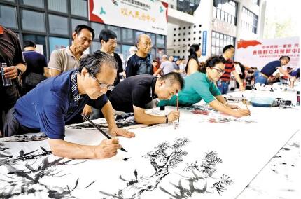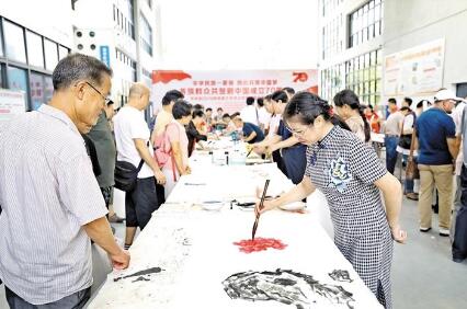 寶安日報(bào)2019年9月19日訊 9月18日下午,以“中華民族一家親,同心共筑中國夢——各族群眾共賀新中國成立70周年”為主題的書畫藝術(shù)筆會(huì)在龍華文化藝術(shù)中心舉行,80多位書畫名家現(xiàn)場揮毫,盡展中華民族文化藝術(shù)瑰寶魅力。