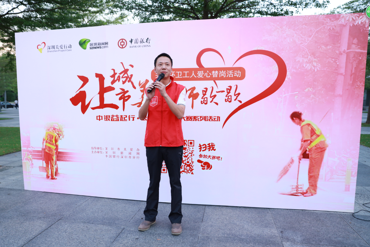 活動當(dāng)天,市城市管理局科長張晨曦也親臨現(xiàn)場,他表示,“愛心替崗”旨在倡導(dǎo)和組織社會公益組織、愛心企業(yè)、熱心人士等,通過提供服務(wù)、贈予物資、精神激勵等方式,以力所能及、溫暖貼心的方式關(guān)愛和支持環(huán)衛(wèi)工人,廣泛開展為環(huán)衛(wèi)工人送溫暖活動,倡導(dǎo)全社會講衛(wèi)生、愛環(huán)境,身體力行垃圾不落地、垃圾分類減量的綠色生活方式,為美麗深圳建設(shè)再添亮點(diǎn)。