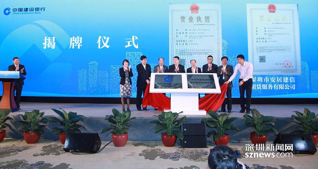 現(xiàn)場,建行參與投資的2家住房租賃服務(wù)公司——由建信信托控股的建信住房服務(wù)(深圳)有限公司(以下簡稱“建信住房”)及建行與深圳市人才安居集團合資的安居建信租賃服務(wù)有限公司正式揭牌。