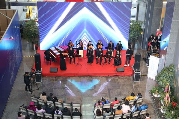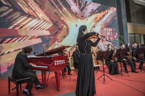 琴聲時(shí)而舒緩如流泉,時(shí)而激越如飛瀑,時(shí)而清脆如珠落玉盤,時(shí)而低回如呢喃細(xì)語(yǔ)……鋼琴與提琴交織,管樂和弦樂共舞,是的,你沒有聽錯(cuò),這是古典交響樂在午間響起,在福田CBD,在白領(lǐng)云集的辦公樓,在招商銀行深圳分行大廈的營(yíng)業(yè)大廳里。2018年2月6日,招商銀行深圳分行大廈迎來了福田愛樂樂團(tuán)午間音樂會(huì)新年的第三場(chǎng)演出,也是該樂團(tuán)自2015年創(chuàng)辦午間音樂會(huì)以來的第84場(chǎng)演出。高雅的藝術(shù)氣息讓原本單調(diào)的午間趣味橫生,動(dòng)人的場(chǎng)景、美妙的樂音,在這里一一定格。