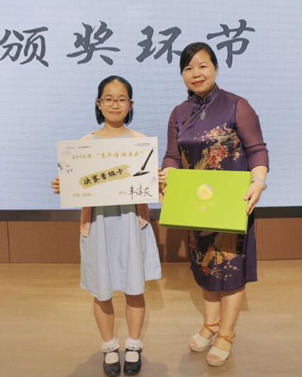 決賽當(dāng)日,在現(xiàn)場的比拼環(huán)節(jié)中,各位選手分組答題,分秒必爭,充分展現(xiàn)了豐富的國學(xué)知識和詩詞底蘊(yùn),他們的精彩表現(xiàn)贏得了現(xiàn)場嘉賓、家長們的陣陣掌聲。最終,來自深圳市百合外國語學(xué)校的選手章譯農(nóng),在眾多選手中脫穎而出,以滿分100分的優(yōu)異成績力壓群雄,奪得深圳賽區(qū)特等獎——“深圳太平之星”稱號。章譯農(nóng)選手將在8月代表深圳賽區(qū)赴北京參加全國《群英會》閉幕活動,與權(quán)威語言藝術(shù)大師們一同錄制《共讀一首詩》節(jié)目。