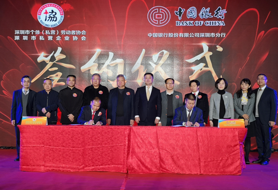深圳新聞網(wǎng)1月3日訊 1月3日下午,作為深圳改革開放與經(jīng)濟(jì)發(fā)展的重要力量和代表,深圳市個(gè)體(私營)勞動(dòng)者協(xié)會(huì)(下稱“深個(gè)協(xié)”)隆重舉辦“改革開放四十周年慶典“,并與唯一一家銀行——中國銀行深圳市分行簽訂全面戰(zhàn)略合作協(xié)議。中國個(gè)體勞動(dòng)者協(xié)會(huì)會(huì)長鐘攸平、深圳市市場和質(zhì)量監(jiān)督管理委員會(huì)書記夏昆山、深圳市個(gè)體(私營)勞動(dòng)者協(xié)會(huì)會(huì)長曾宏興,以及中國銀行深圳市分行行長姚華明、副行長葉新階出席了簽約儀式。深個(gè)協(xié)會(huì)長曾宏興和深圳中行副行長葉新階作為雙方代表簽署了協(xié)議。