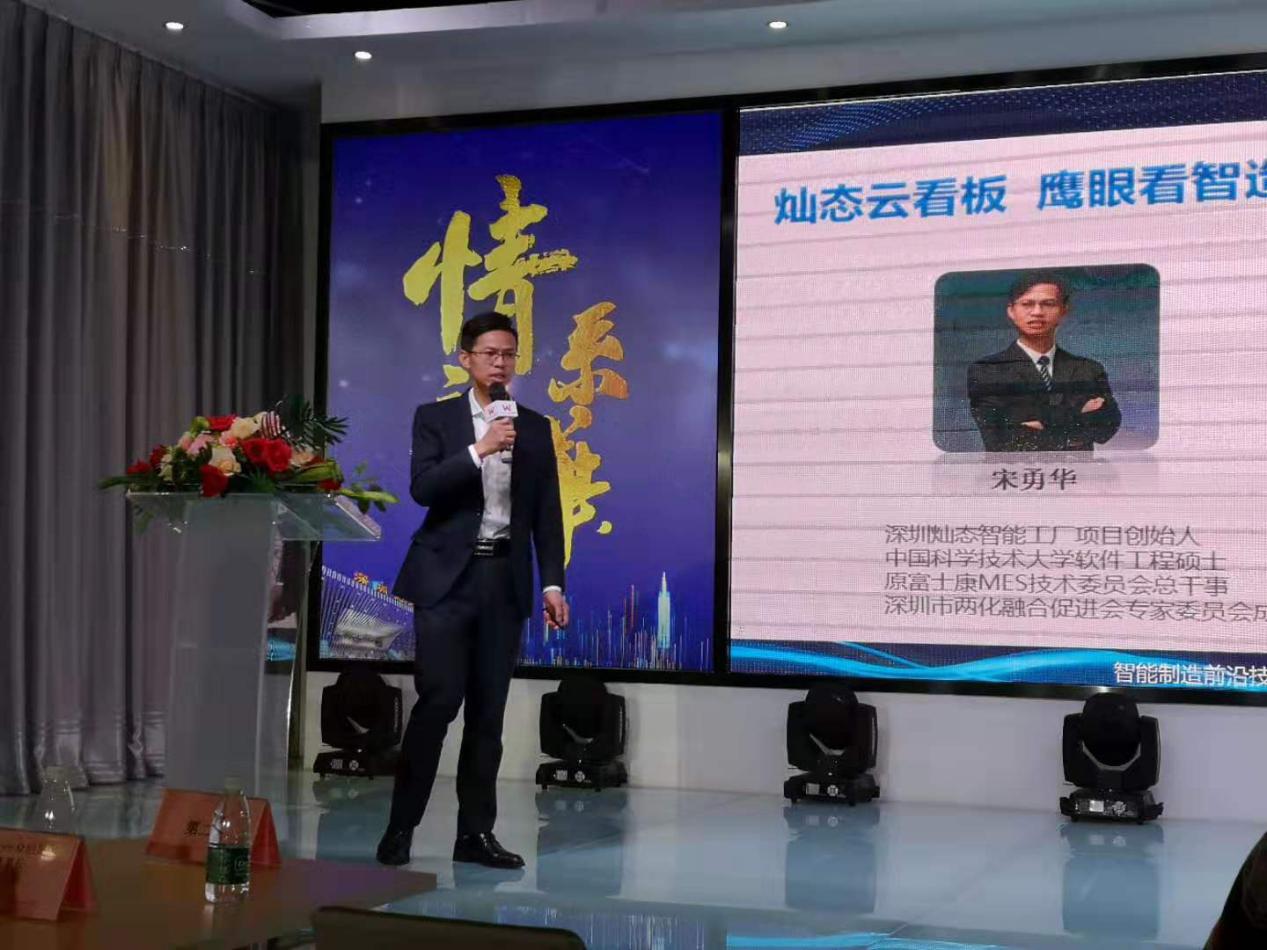 燦態(tài)信息總經(jīng)理宋勇華是原富士康集團MES技術委員會總干事,他以18年富士康智能制造系統(tǒng)實踐經(jīng)驗、100多個工廠信息化智能項目沉淀工作經(jīng)歷介紹了面向中小企業(yè)的智能制造落地方案。其解決方案依據(jù)他原創(chuàng)的三屏看智造理念,即“燦態(tài)鷹眼云看板” SaaS產(chǎn)品,打造符合企業(yè)發(fā)展實際需要和高性價比的智能化平臺,助力中小企業(yè)智能化務實落地。