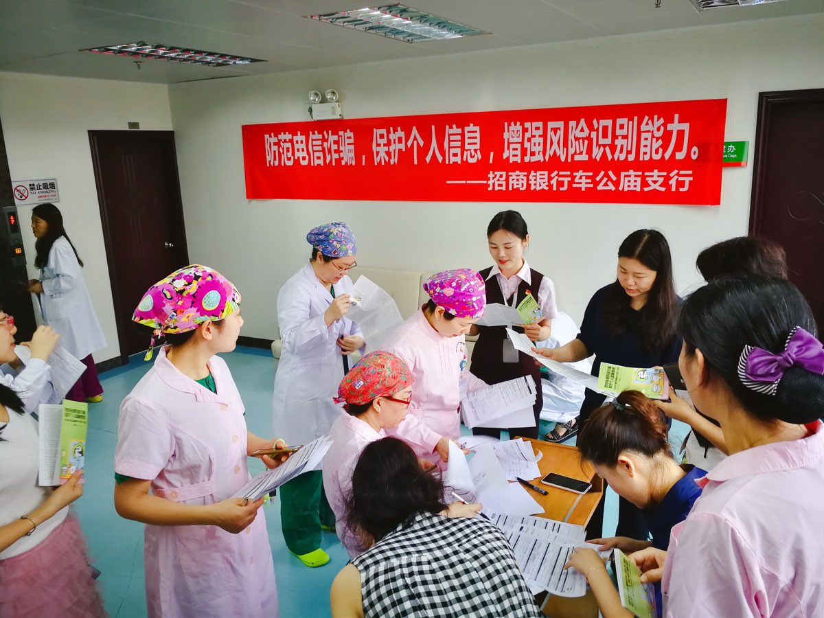 車公廟支行走進深圳市婦幼保健院,以“防范電信網絡詐騙、保護個人信息,增強風險識別能力”為主題,宣傳提升金融素養(yǎng)、共建金融消費的健康環(huán)境。消保先鋒隊著重解防范電信網絡詐騙小技巧,做到“不輕信,不匯款、不透漏、不掃碼、不點擊鏈接、不接聽轉接電話?!蓖瑫r向醫(yī)護人員普及保護個人金融信息保護、支付安全宣傳等內容,邀請客戶關注“招小寶”公眾號,閱讀轉發(fā)總分行推出的系列宣傳軟文。