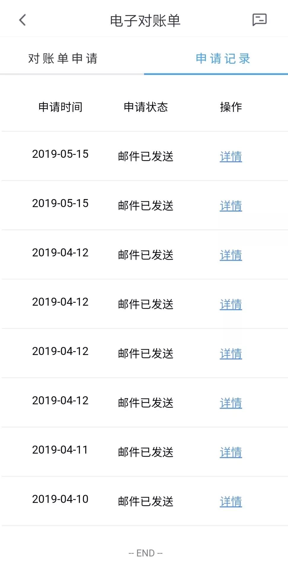叮咚,電子對賬單已到達(dá)郵箱!點(diǎn)擊申請記錄,還可以查詢郵件發(fā)送進(jìn)度哦!