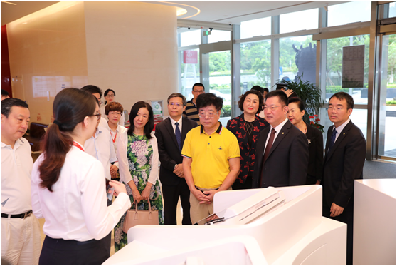 在華夏銀行深圳分行黨委書記、行長陳傳龍的陪同下,深商聯(lián)會長、執(zhí)行會長及各企業(yè)家來到分行營業(yè)部,考察調(diào)研智慧網(wǎng)點(diǎn)建設(shè)情況,在工作人員講解下,現(xiàn)場觀摩體驗(yàn)了“人臉識別+指靜脈”智能機(jī)具應(yīng)用,對營業(yè)網(wǎng)點(diǎn)智能化、專業(yè)化服務(wù)水平給予肯定。同時,參觀黨員之家、職工之家、青年之家,現(xiàn)場感受華夏銀行深圳分行企業(yè)文化建設(shè)。隨后,雙方高管進(jìn)行了親切座談。