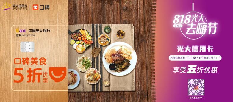活動(dòng)期間每周一至每周日,光大信用卡用戶且在支付寶實(shí)名認(rèn)證個(gè)人用戶,在口碑平臺(tái)美食行業(yè)商戶處(休閑食品的商戶除外),使用支付寶賬戶綁定的光大銀行信用卡快捷支付進(jìn)行當(dāng)面付消費(fèi),有機(jī)會(huì)享受5折優(yōu)惠,最高15元優(yōu)惠封頂。活動(dòng)期間每天限前8000個(gè)優(yōu)惠名額,名額有限,用完即止?;顒?dòng)期間同一用戶每月限享1次優(yōu)惠機(jī)會(huì)。(詳見(jiàn)陽(yáng)光惠生活A(yù)PP或口碑APP銀行卡特惠頻道,具體路徑見(jiàn)活動(dòng)細(xì)則)。