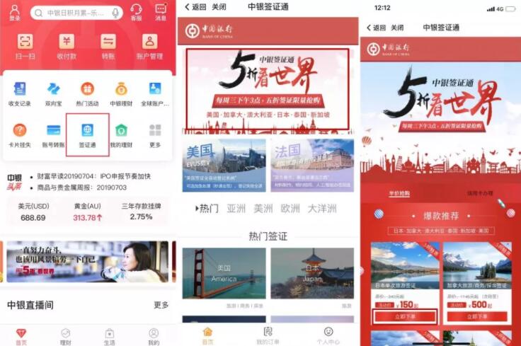 5折沒搶到,怎么辦?不怕,中行送您優(yōu)惠大禮包,8月28日(周三)下午3點-4點期間對于首次參與“五折看世界”半價活動,搶購未成功的用戶,可獲得總價值210元優(yōu)惠券禮包(同一個中國銀行賬戶限首次領?。┤绻k理簽證需要開立存款證明可直接在中國銀行手機銀行辦理線上個人存款證明。不用線下跑銀行,不用排隊等號即可在線申請包括立等可取的電子存款證明以及郵寄到家的紙質(zhì)存款證明。