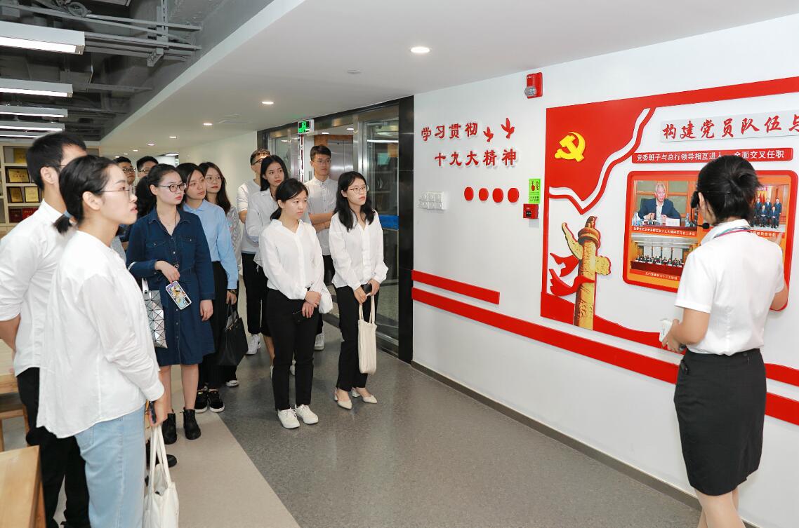 開放日活動的第一站總行大樓,同學(xué)們在深圳農(nóng)商行工作人員的帶領(lǐng)下參觀了黨群活動中心,了解了黨組織架構(gòu)、黨建特色活動、黨群風(fēng)采展示與員工日常休閑娛樂活動。