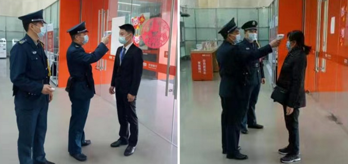 網(wǎng)點服務(wù)人員對進(jìn)入營業(yè)網(wǎng)點的人員做好體溫測量,對于上門辦理業(yè)務(wù)的客戶,引導(dǎo)客戶佩戴口罩,鼓勵客戶使用自助機具或線上金融服務(wù),每日定時對填單臺、簽字筆等客戶頻繁接觸部位進(jìn)行消毒,保障客戶身體健康。
