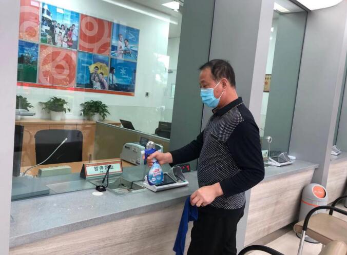 每天正式營業(yè)前,網(wǎng)點對營業(yè)大廳、自助設(shè)備、柜臺等進(jìn)行360°全面無死角消毒。營業(yè)期間,每天確保廳堂環(huán)境每兩小時、自助機具每小時的頻率做好消毒工作,營造安全的業(yè)務(wù)辦理環(huán)境供客戶安心辦理。