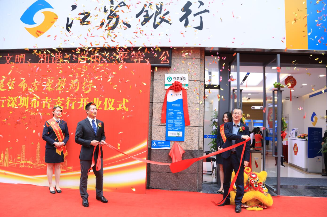 深圳新聞網(wǎng)·見圳客戶端2021年3月5日訊 3月5日,江蘇銀行深圳布吉支行開業(yè)儀式圓滿舉行,龍崗區(qū)金融辦相關(guān)領(lǐng)導(dǎo)、各界企業(yè)嘉賓出席開業(yè)儀式。江蘇銀行深圳分行副行長張慶光與布吉支行負(fù)責(zé)人共同為支行揭牌,隨著紅綢的落下,宣告了布吉支行正式揭牌開業(yè),揭開了江蘇銀行深圳布吉支行“逐夢(mèng)布吉,聚勢(shì)前行”的序幕。