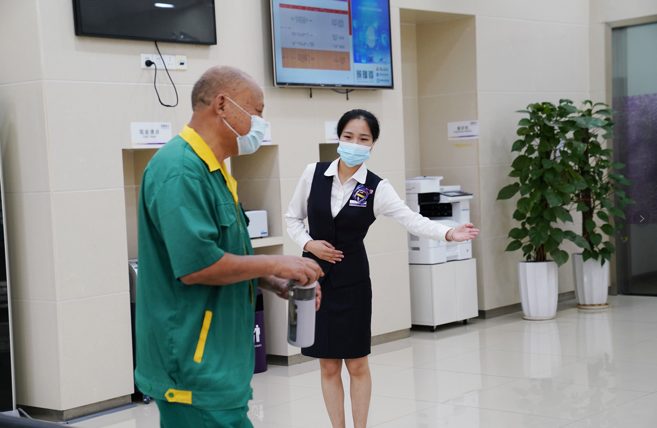 不僅創(chuàng)新宣傳形式,深圳分行還積極引導(dǎo)各支行將“陽光服務(wù),創(chuàng)造價值”的服務(wù)理念注入到適老化服務(wù)點滴中。比如,各營業(yè)網(wǎng)點不僅為老年客戶群體配備了老花鏡、放大鏡、愛心專座、愛心窗口、拐杖、輪椅、血壓儀等硬件設(shè)施;各網(wǎng)點現(xiàn)場均開設(shè)老年人綠色通道;