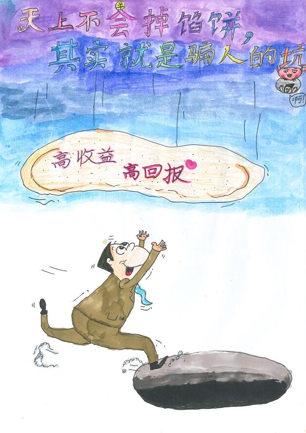 據(jù)了解,本次活動(dòng)以“防范電信網(wǎng)絡(luò)詐騙”“防范非法集資”“珍視個(gè)人信用”“打擊洗錢”等貼近日常生活的金融知識為題材,華夏銀行深圳分行組織員工子女們開動(dòng)腦筋、發(fā)揮自身的聰明才智和想象力,通過漫畫、水彩畫、蠟筆畫等多種繪畫形式,將晦澀難懂的金融知識變得生動(dòng)形象、通俗易懂。