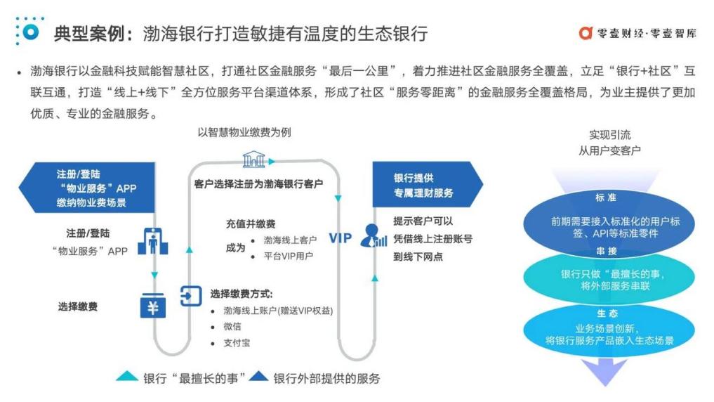 以此次該行入圍行業(yè)權(quán)威報(bào)告的“智慧物業(yè)”金融科技創(chuàng)新服務(wù)項(xiàng)目為例,渤海銀行創(chuàng)新業(yè)務(wù)場景——繳納物業(yè)費(fèi)場景,社區(qū)居民通過“物業(yè)服務(wù)APP”繳納物業(yè)費(fèi)時(shí),可以選擇渤海銀行線上賬戶為付費(fèi)方式,當(dāng)用戶充值并繳費(fèi)后,便同時(shí)成為了渤海銀行線上客戶和平臺V IP,并享受銀行提供的專屬理財(cái)服務(wù)。通過將自身服務(wù)產(chǎn)品嵌入“物業(yè)服務(wù)”A PP,只做“最擅長的事,渤海銀行將外部服務(wù)串聯(lián)”,最終實(shí)現(xiàn)A PP用戶到自身客戶的轉(zhuǎn)變。