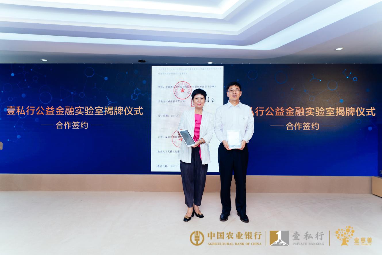 9月16日,中國農(nóng)業(yè)銀行總行私人銀行部負(fù)責(zé)人黃潞,深圳市社會組織管理局副局長白凌,深圳市工商聯(lián)黨組成員、專職副主席馮德崇,中國農(nóng)業(yè)銀行深圳市分行黨委委員、副行長王國彪,深圳市慈善會執(zhí)行副會長房濤,深圳市創(chuàng)新企業(yè)社會責(zé)任促進(jìn)中心秘書長曾亞琳,共同為“壹私行公益金融實驗室”揭牌,公益金融實驗室正式落地深圳。