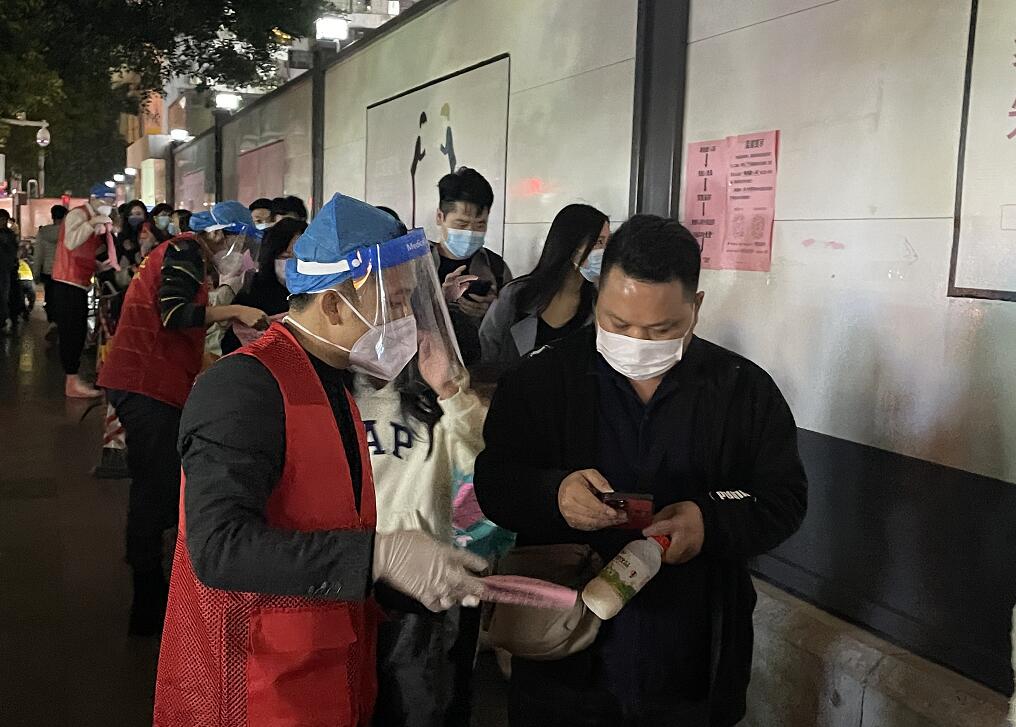 2月18日,青年志愿者們顧不上吃晚飯,一下班就奔赴南園社區(qū)核酸篩查檢測(cè)點(diǎn),與南園社區(qū)的志愿者們一起投入到維護(hù)核酸采集秩序的隊(duì)伍中,一直服務(wù)到深夜。