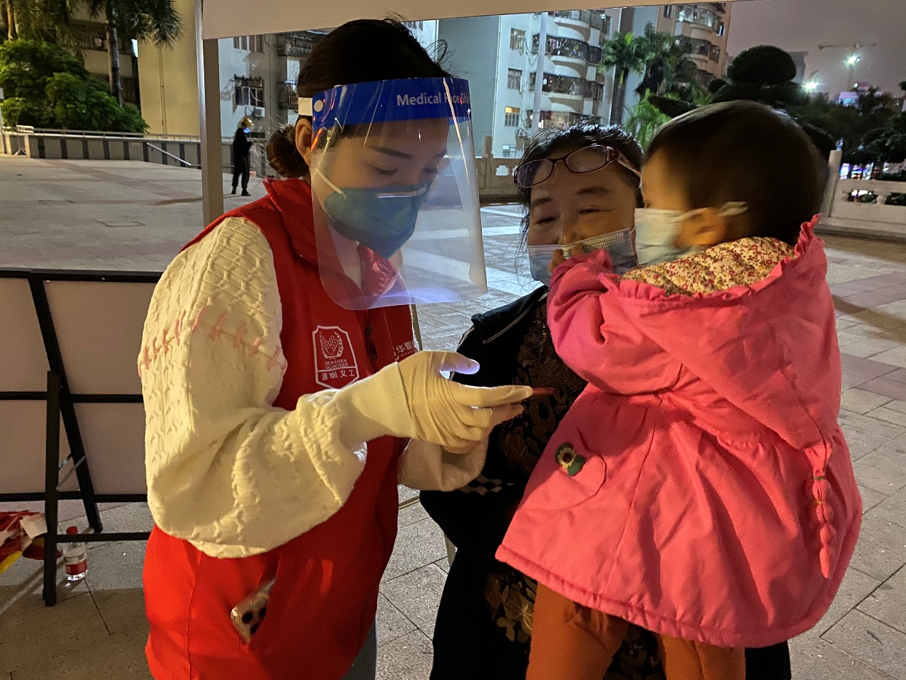 南山區(qū)連續(xù)發(fā)布多個通告,宇宙最強街道粵海街道已經(jīng)開展第十輪全員核酸檢測。華夏銀行深圳后海支行何濱舟第一時間響應(yīng)抗疫志愿服務(wù)倡議,主動聯(lián)系粵海街道對接聯(lián)系人報名。她連續(xù)3天下班都堅守在粵海街道香坊·萬豪廣場核酸檢測點,重復(fù)說著“請大家排好隊,保持一米距離,提前準(zhǔn)備好粵核酸,耐心等候”。在結(jié)束了一晚的志愿者工作后,她還主動幫助小區(qū)物業(yè)清理防疫垃圾,不怕苦、不怕累的華夏精神得到社區(qū)的一致認(rèn)可。