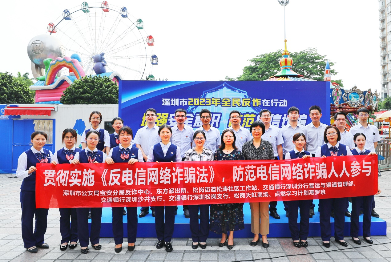 讀特客戶端·深圳新聞網(wǎng)2023年6月1日訊(記者 朱琳 通訊員 張?zhí)駥帲檫M一步提高群眾防范各類電信詐騙安全意識,有效打擊詐騙犯罪,預防和減少電信詐騙案件的發(fā)生,廣泛宣傳落實《反電信網(wǎng)絡(luò)詐騙法》,6月1日,交通銀行深圳分行聯(lián)合深圳市公安局寶安分局反詐中心、松崗街道辦、東方派出所、松濤社區(qū)工作站、松崗天虹商場開展了主題為“2023年全民反詐在行動——增強安全意識,防范電信詐騙”的戶外片區(qū)反詐宣傳活動。