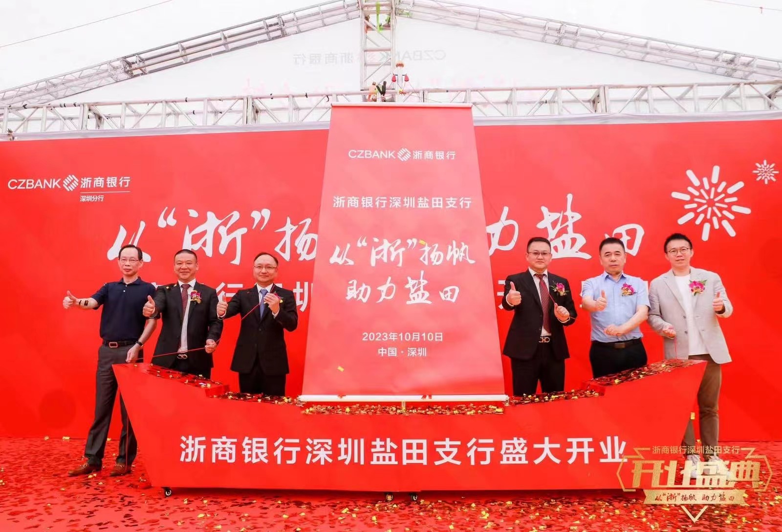 深圳新聞網(wǎng)2023年10月10日訊(記者 朱琳 通訊員 劉璇)10月10日,浙商銀行深圳鹽田支行舉辦了“從浙揚(yáng)帆,助力鹽田”開業(yè)慶典。鹽田區(qū)人民政府副區(qū)長周建軍,鹽田區(qū)工業(yè)和信息化局局長汪大鵬,浙商銀行深圳分行黨委書記、行長樓瞿華,浙商銀行深圳分行黨委委員、紀(jì)委書記、風(fēng)險(xiǎn)監(jiān)控官郭維奇,華南城控股集團(tuán)執(zhí)行董事覃文忠,浙商銀行深圳鹽田支行行長葉藝華以及鹽田發(fā)展改革局、鹽田區(qū)科技創(chuàng)新局、鹽田區(qū)財(cái)政局等機(jī)構(gòu)負(fù)責(zé)人、企業(yè)商會(huì)代表60余人出席。