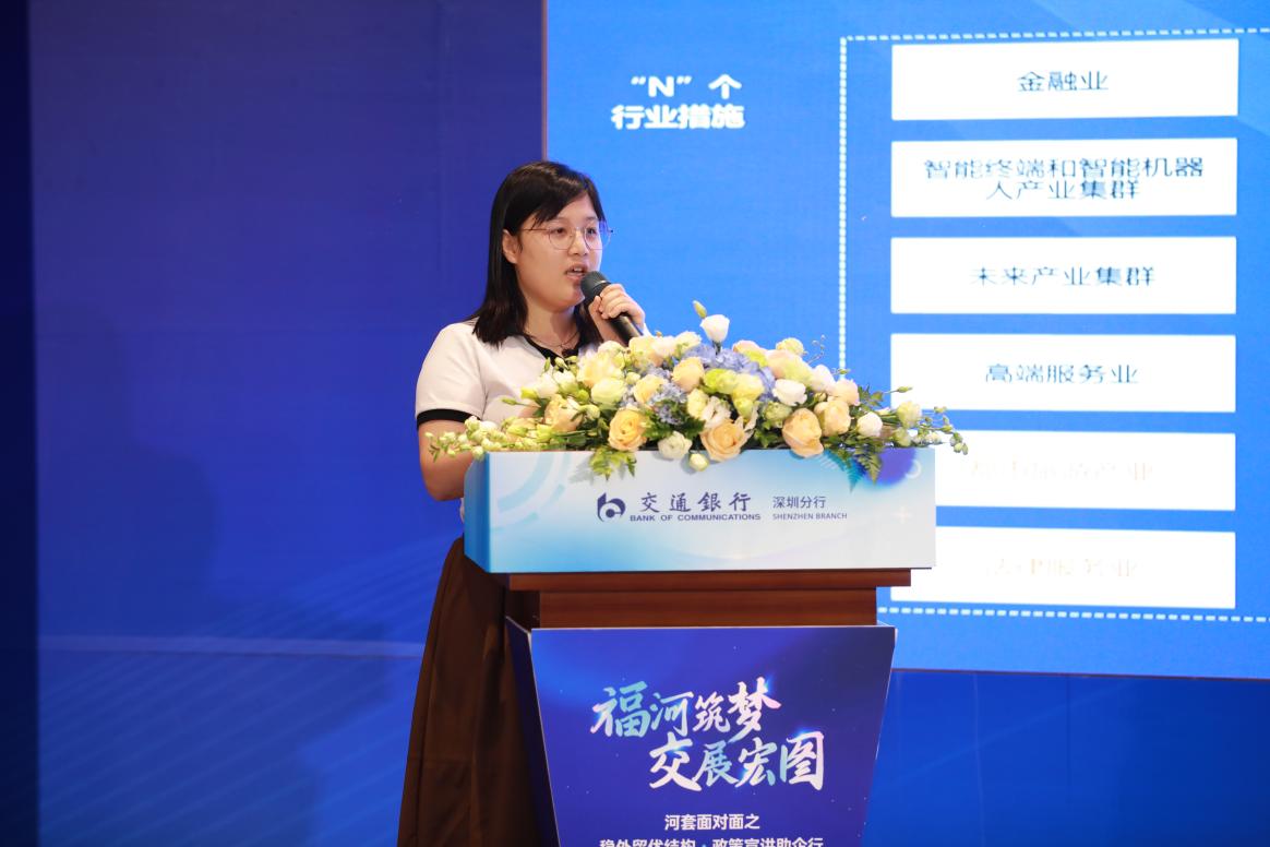 深圳市福田區(qū)投資推廣和企業(yè)服務中心介紹了深圳市和福田區(qū)“1+9+N”產業(yè)高質量發(fā)展支持政策,從政策背景、政策內容、政策申報等內容出發(fā),精準解讀,幫助參會企業(yè)全面了解政策要點,力爭著力打造更具競爭力的國際金融中心和金融科技中心。