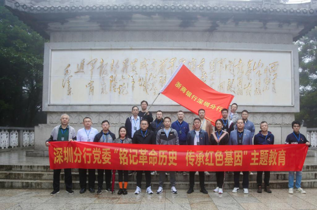 在井岡山烈士陵園,浙商銀行深圳分行黨委書記、行長樓瞿華帶領全體黨員向革命烈士敬獻了花圈并默哀。