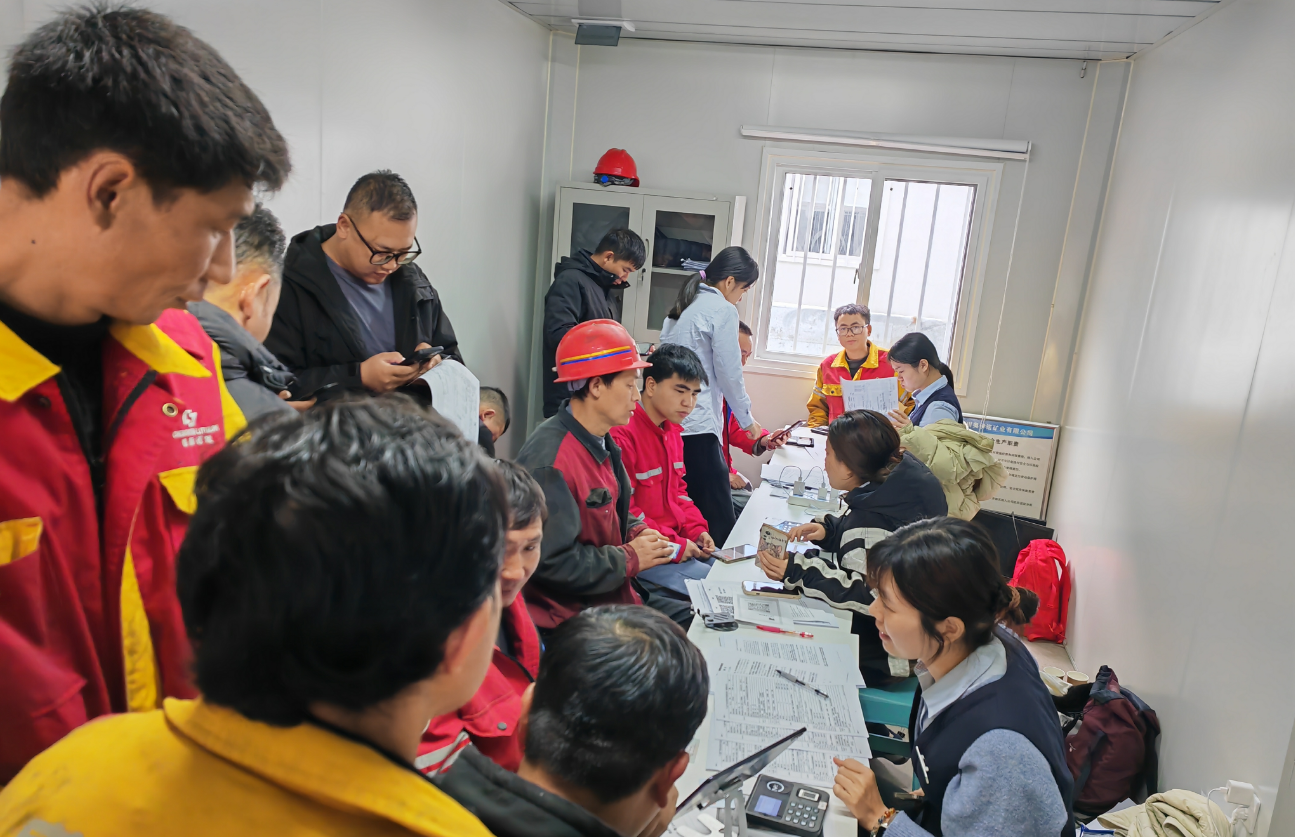 面對困難,陳嘉濤深知客戶需求無小事。他果斷決定帶隊(duì)前往現(xiàn)場,為當(dāng)?shù)貑T工集中辦理銀行卡開卡及工資代發(fā)相關(guān)手續(xù)。從繁華的深圳到偏遠(yuǎn)的高原,路途遙遠(yuǎn)、舟車勞頓,加上高原反應(yīng)帶來的身體不適,讓整個(gè)團(tuán)隊(duì)面臨嚴(yán)峻考驗(yàn)。但他們沒有絲毫退縮,抵達(dá)后便迅速搭建臨時(shí)服務(wù)點(diǎn),投入到緊張的工作中。