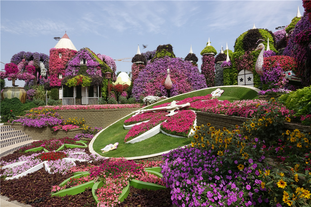 迪拜奇跡花園是迪拜著名的戶外休閑度假勝地,建造時耗費了約4500萬株鮮花,被稱為世界上最美、最大的花園。李仁奇 攝