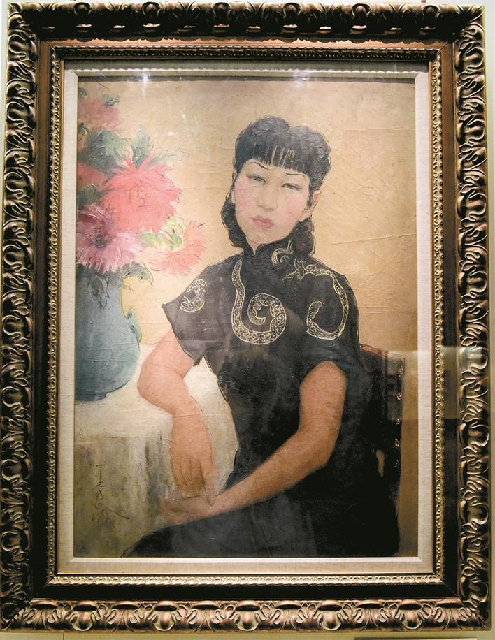 記者在現(xiàn)場(chǎng)看到,這幅最有名的自畫(huà)像作于1940年,畫(huà)中人身著黑色素花旗袍,斜著頭優(yōu)雅地坐在圓桌邊,桌上置一瓶紅花。古典高雅的著裝,端莊大氣的姿態(tài),眉宇間一縷淡淡的憂(yōu)愁,增添了的神秘美感。整幅作品用色豐富,筆觸明快。據(jù)悉,這幅作品創(chuàng)作時(shí)正值二次世界大戰(zhàn)爆發(fā),巴黎淪陷,潘玉良棲居郊外,在這一時(shí)期,還有很多佳作問(wèn)世。