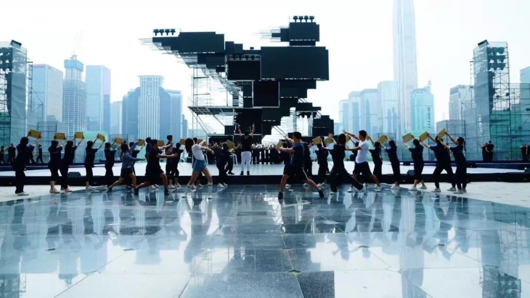 主題曲《新的一天》整首歌以小見(jiàn)大,用年輕上班族的拼搏精神體現(xiàn)深圳人共性,引領(lǐng)時(shí)代進(jìn)步潮流。“ 拒絕空想冒險(xiǎn)/誰(shuí)不渴望明天/有夢(mèng)就要實(shí)現(xiàn) ”,交織的夢(mèng)想成就了深圳?!? 新的一天就在眼前/我的命運(yùn)我要自己改變 ”,改革開(kāi)放賦予了這個(gè)時(shí)代勇敢堅(jiān)持的精神。為了排演這個(gè)節(jié)目,導(dǎo)演卓依·馬可尼利和全體演員歷經(jīng)了一個(gè)月的排練,克服了演出場(chǎng)地露天的高溫,在整個(gè)節(jié)目近五分鐘的時(shí)長(zhǎng)里,展現(xiàn)了新時(shí)代青年對(duì)于工作的拼勁與堅(jiān)韌、活力和激情,彰顯了剛?cè)嵯酀?jì)、自強(qiáng)不息的深圳精神。