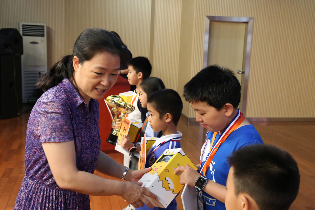 中國(guó)國(guó)際象棋協(xié)會(huì)副主席、深圳棋院院長(zhǎng)劉適為獲獎(jiǎng)選手頒獎(jiǎng)