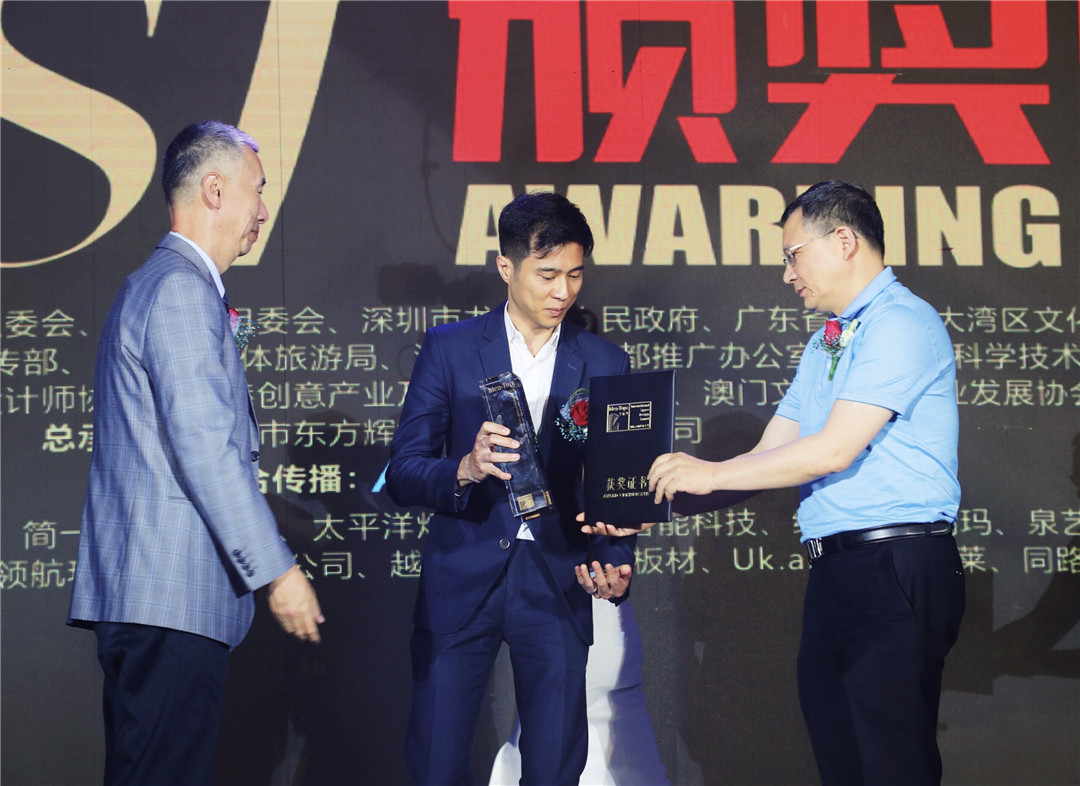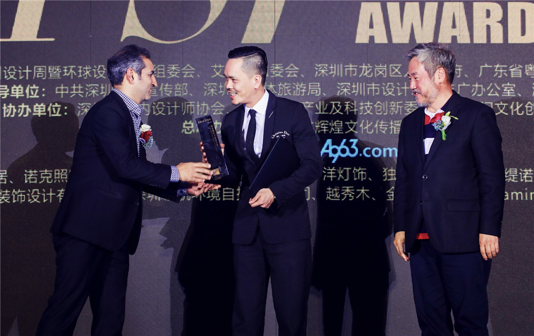△深圳市室內(nèi)設(shè)計師協(xié)會會長、HHD假日東方國際設(shè)計機構(gòu)創(chuàng)始人洪忠軒、香港大學(xué)建筑學(xué)院教授賈倍思為上海TOWO堂晤設(shè)計頒發(fā)“最佳展示空間設(shè)計獎”