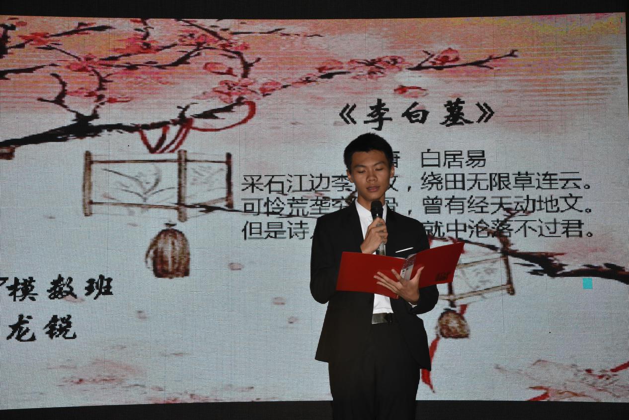 最后,演出在特別節(jié)目——《琵琶行》單人獨舞中落下了帷幕,本次大賽最終評出了一、二、三等獎并給選手們頒發(fā)獎杯,活動正式走向尾聲。作為評委之一的方趙平老師為本次活動熱情點贊,他由衷地表示,讓詩歌滋養(yǎng)學(xué)子的心靈,陶冶學(xué)子的情操,有助于書香校園的建設(shè),希望校企加強合作,共同 傳承經(jīng)典。