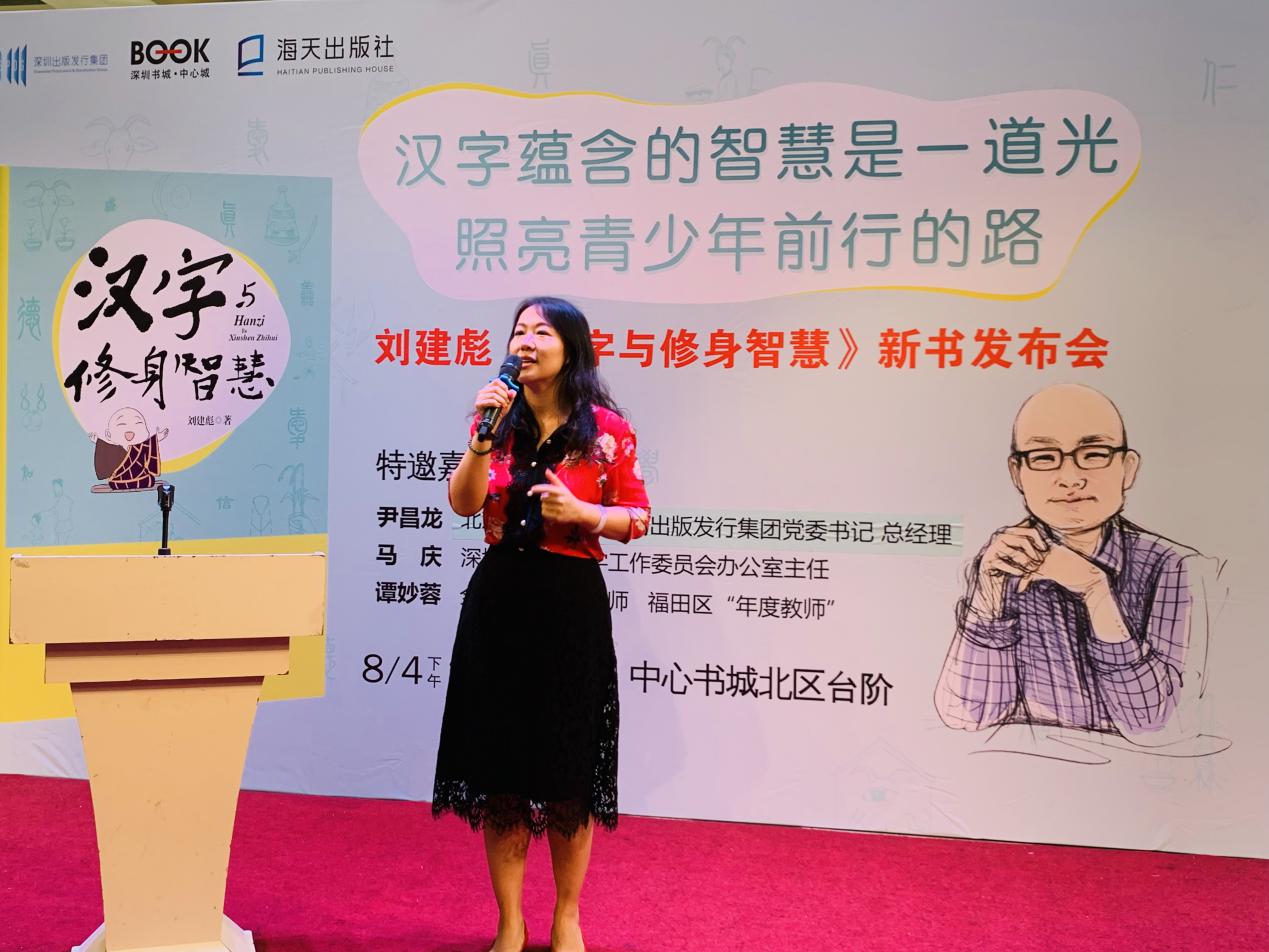 深圳出版發(fā)行集團(tuán)黨委書(shū)記、總經(jīng)理尹昌龍?jiān)诎l(fā)言中指出,漢字里蘊(yùn)藏著中華文明的密碼,而《漢字與修身智慧》這本書(shū)恰是從漢字出發(fā),解讀中華文化的基因,以美德教育為旨?xì)w,有助于喚起我們對(duì)漢字的熱愛(ài),對(duì)民族文化的自信。他向在場(chǎng)觀眾推薦這本書(shū),并指其信息量大,兼具趣味性、可讀性與啟發(fā)性,值得細(xì)細(xì)品味。另外,馬慶主任表示,漢字投射的是古人的心靈,古人的智慧,古人的修養(yǎng),他贊嘆《漢字與修身智慧》一書(shū)為深圳的文化積累做出了貢獻(xiàn),并鼓勵(lì)親子共讀,共同成長(zhǎng)。譚妙蓉老師也力薦此書(shū),認(rèn)為書(shū)中漢字心能量中的小故事深入淺出,富含哲理,對(duì)青少年乃至成年人美德教育均有借鑒作用,并聲情并茂地朗誦了書(shū)中的《陋室銘》一文,她希望作者將來(lái)能創(chuàng)作出更多關(guān)于漢字的書(shū),讓更多讀者感受到傳統(tǒng)文化的熏陶與滋養(yǎng)。