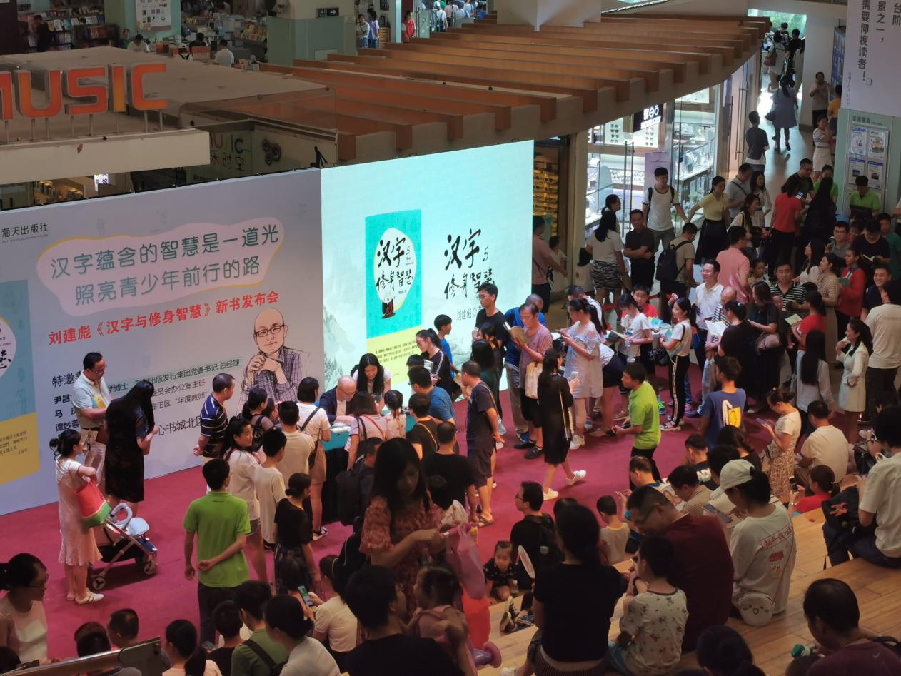 深圳新聞網(wǎng)訊 8月4日下午,壹讀書(shū)會(huì)創(chuàng)始人、知名閱讀推廣人劉建彪《漢字與修身智慧》新書(shū)發(fā)布會(huì)在深圳書(shū)城中心城隆重召開(kāi),本次活動(dòng)由海天出版社和深圳書(shū)城中心城共同舉辦,北京大學(xué)文學(xué)博士、深圳出版發(fā)行集團(tuán)黨委 書(shū)記、總經(jīng)理尹昌龍,深圳市語(yǔ)言文字工作委員會(huì)辦公室主任馬慶,全國(guó)十佳文學(xué)教師、福田區(qū)“年度教師”譚妙蓉三位嘉賓蒞臨現(xiàn)場(chǎng)并致辭。本次新書(shū)發(fā)布受到市民的熱烈追捧,活動(dòng)開(kāi)始前中心書(shū)城北區(qū)臺(tái)階、過(guò)道以及走廊或坐著或站著翹首以盼的閱讀愛(ài)好者。