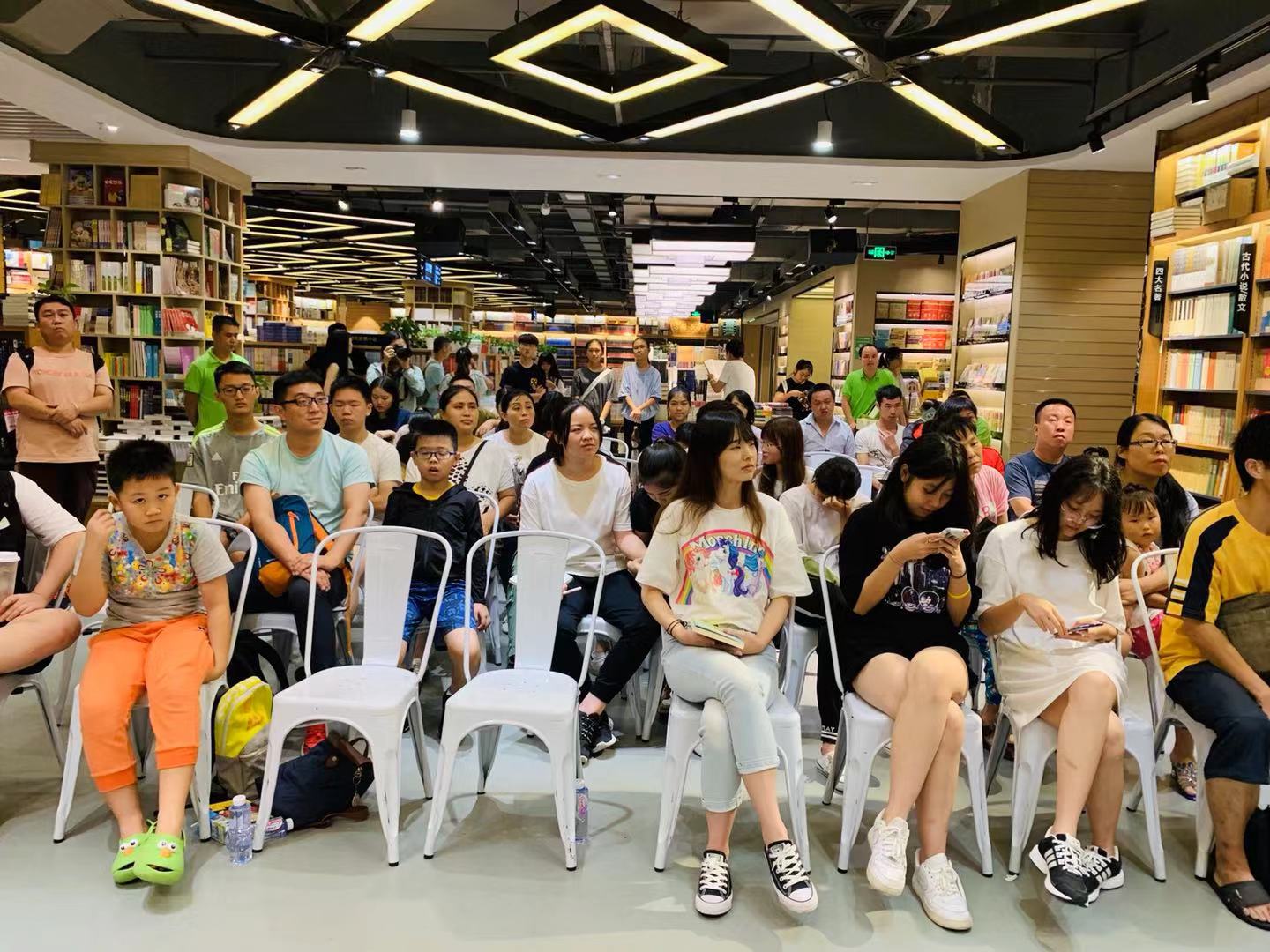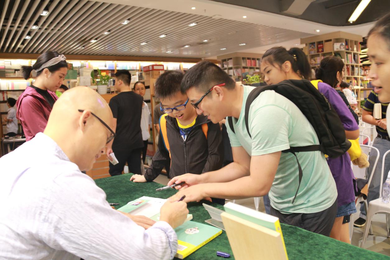 活動最后,作者劉建彪先生繼續(xù)與讀者展開交流,為購書讀者簽名。來自東莞的江先生坦言,周末帶著小孩無意進入羅湖書城,即被活動內(nèi)容吸引,在1個小時的活動中,感受到了漢字的魅力,感受到了深圳濃郁的文化氛圍?!耙院髱Ш⒆佣鄟砩钲跁?,看書聽講座”,他說。