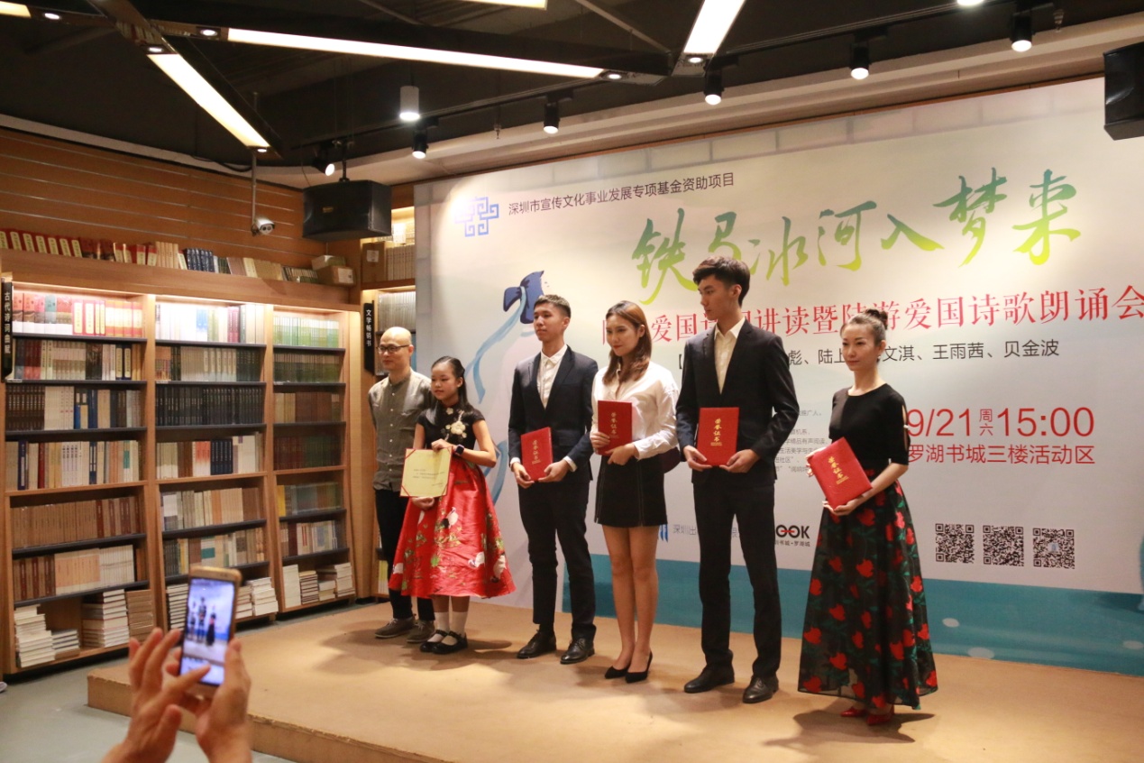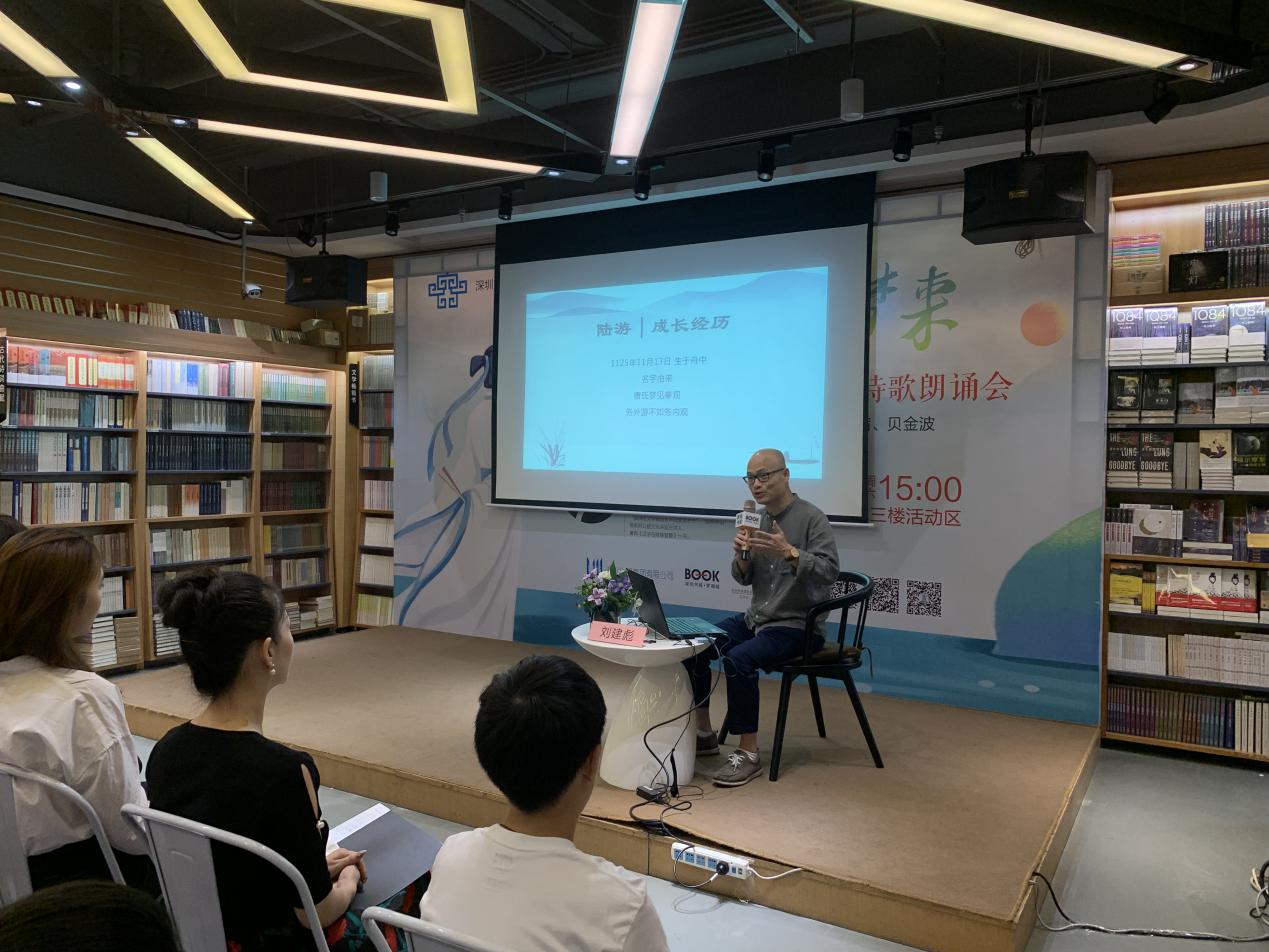 深圳新聞網(wǎng)訊 9月21日下午,由深圳市宣傳文化事業(yè)發(fā)展專項基金資助的“新時代中華優(yōu)秀傳統(tǒng)文化進社區(qū)”項目之“鐵馬冰河入夢來”陸游愛國詩詞公益講座暨陸游愛國詩詞朗誦會在羅湖書城三樓活動區(qū)成功舉辦。本次活動由深圳市壹書文化傳播有限責任公司、深圳書城羅湖城共同主辦,壹書閱讀推廣人、愛詩家創(chuàng)始人劉建彪先生擔任主講嘉賓。活動尚未開始,現(xiàn)場已座無虛席,觀眾們對講座充滿了期待,更有小朋友們朗誦起了陸游的名句。