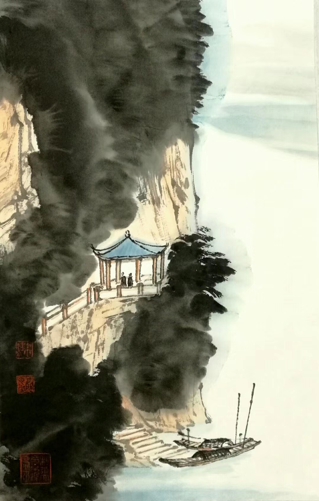 智者說,人生有三重境界:第一重,看山是山,看水是水;第二重,看山不是山,看水不是水;第三重,看山又是山,看水又是水。吳琳初以寫實為主,時常云游四方、畫稿盈笈,得意妙筆不絕如縷;繼而參以己意,畫風(fēng)微變,花鳥魚蟲在造境中盛開、飛翔、游嬉,精品力作吸 人眼眸;今番小山水,神來之筆頻頻,寫實乎?寫意乎?寫心也!或許,是吳琳的畫境暗合了人生三境吧。竊以為,寫實是一眼之境;寫意是一時之念;寫心乃一生之魂?;蛟S,已過天命的吳琳兄,欲拋脫生活之牢籠,直抵生命的本真,心生禪意,境界便升至新的維度。如此,畫境安在?自然隨心,有心則為之,無心則諉之。老子言“無為而無不為”,蘇軾言“無意于佳乃佳”,想必隨心之境可助吳琳兄“一臂之力”,畫境、藝境自可更上層樓。